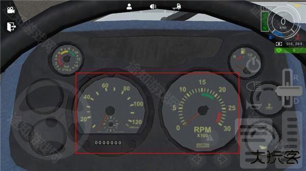 1、进入大卡车模拟器2,点击上方箭头标注的位置