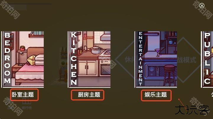 3、选择休闲模式的玩家需要选择游戏主题场景,有卧室主题,厨房主题,娱乐主题等