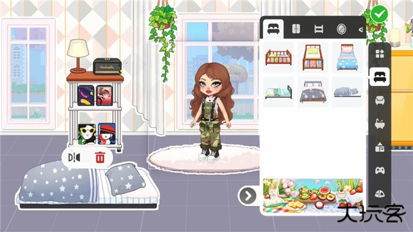 3、玩家可以购买各式各样的家具装扮房屋,前往服装店买衣服装饰自己。