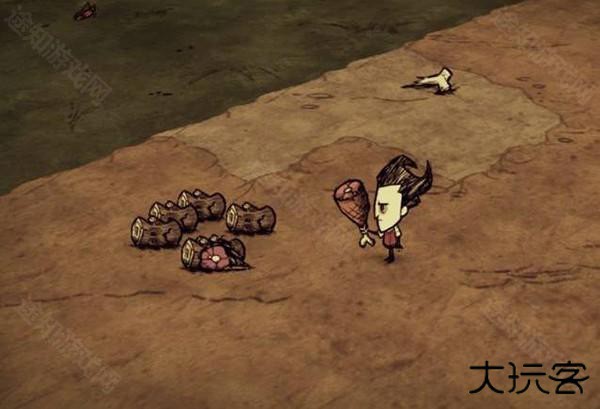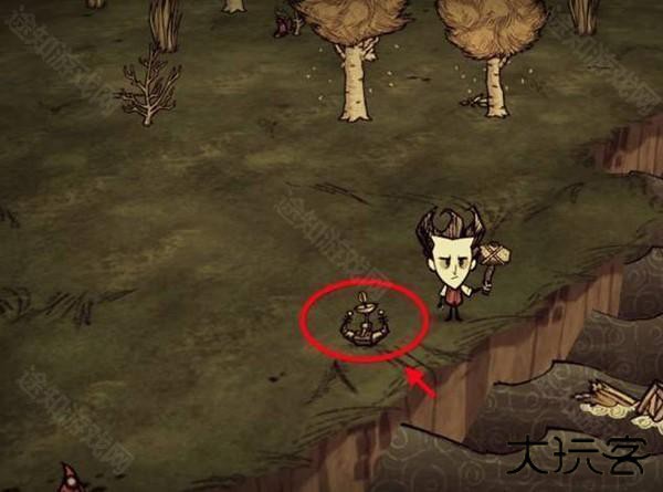 4、接下来玩家在树林中寻找生命树,用斧子砍倒得到活木。注意,饥荒游戏里的活木不是那么好找的,玩家可以用另外一种方法来获得活木:它就是击败树人。