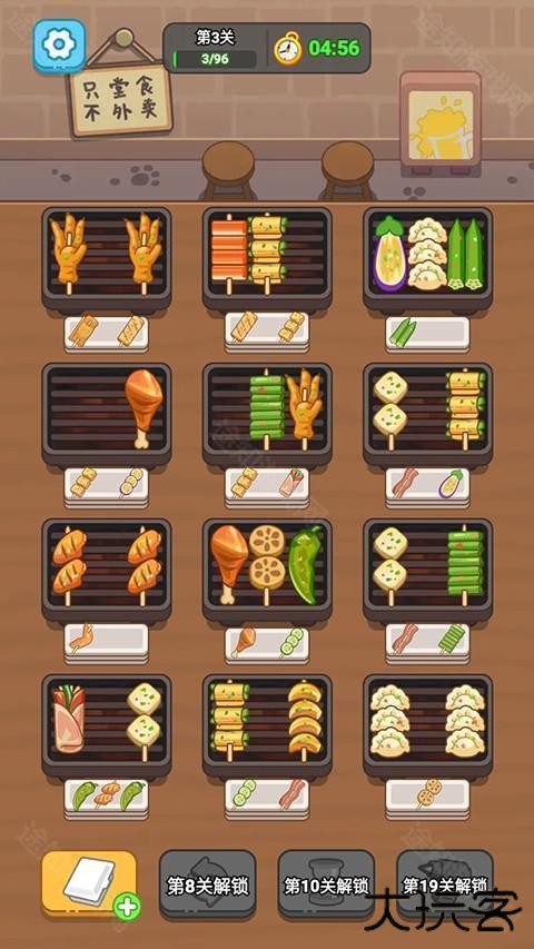 - 道具助力,大快朵颐:各种神奇道具随时待命,轻松扫清盘子障碍,让你的烧烤摊热闹非凡!