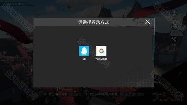 1、打开pubg mobile国际服,进去游戏之后我们就会到了登录界面,这个是我们需要首先点击同意下方的两个协议,