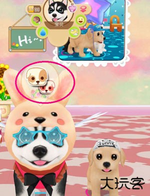 5、进行访临后,点触小狗的形廓,顶处会显露这样的圈钮,能使它们一块完成很多动作哟。