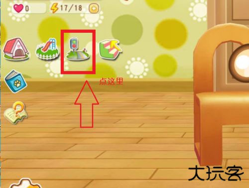 1、首先要进至小狗的厅饰界面处,在左端有个屋状的形标,继而在我所框的此处点按开。