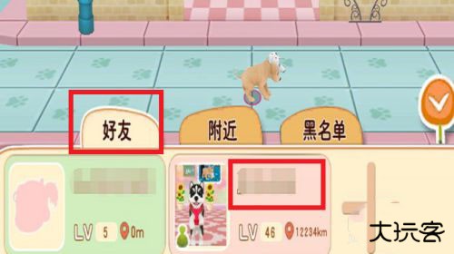 6、在此界面,点这些圈形能够互相的进行摆手和摇尾,还能送气球给它,并结伴同食。