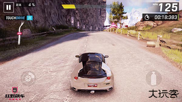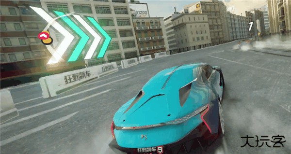 6.重力感应操作技巧,屏幕只有刹车和氮气加速,利用手机重力感应可以控制左右方向。上下倾斜游戏设备来控制左右转向。弯道转向时,点击刹车按钮后就能漂移,而最右侧的为氮气,点击后车辆可以加速。