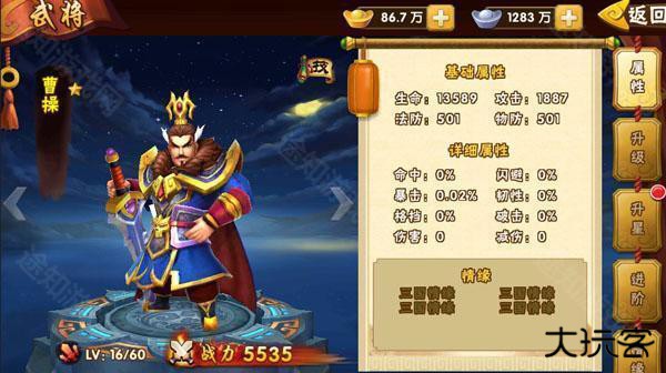 2、丰富的关卡任务等你来闯,收集和养成强大的武将,完成一个个高度关卡。