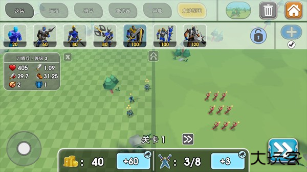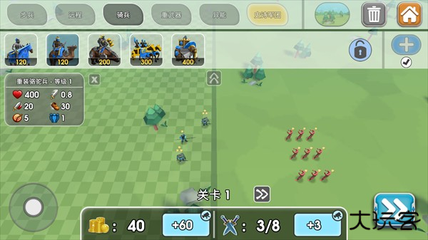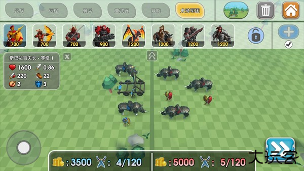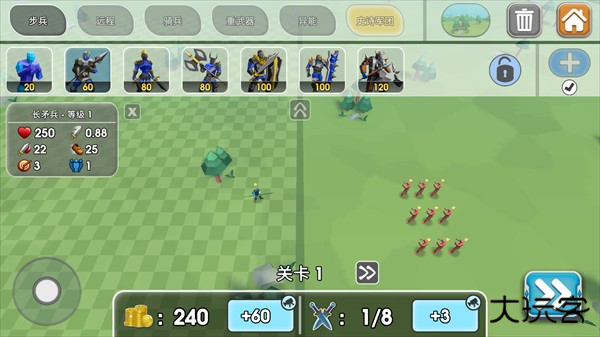2、开局先认真看对方的阵容特点,根据兵种间的属性克制关系来搭配队伍。比如长矛兵克骑兵、弓箭手怕盾兵这种设定要灵活运用啦