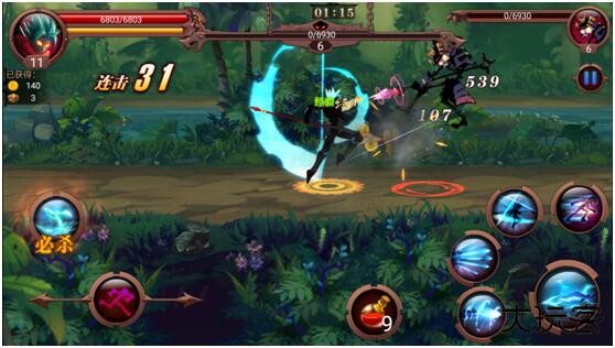 2.战斗节奏非常快,动作感十足!找准时机使出连续攻击(连击)或是威力巨大的必杀技、特殊技能,打得敌人措手不及,那种激烈的对决感觉超级爽。