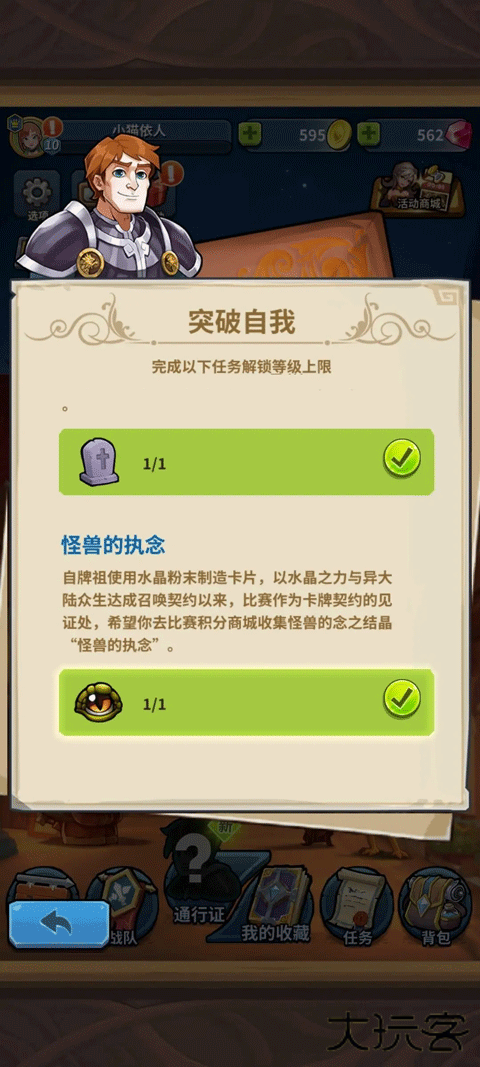 当你有只怪兽提升到 6 级时,首页会飘起任务气球,跟着指引走就能解锁 7 级上限任务(俗称开七)。开完七后,同样方式开启 8 级任务(开八)