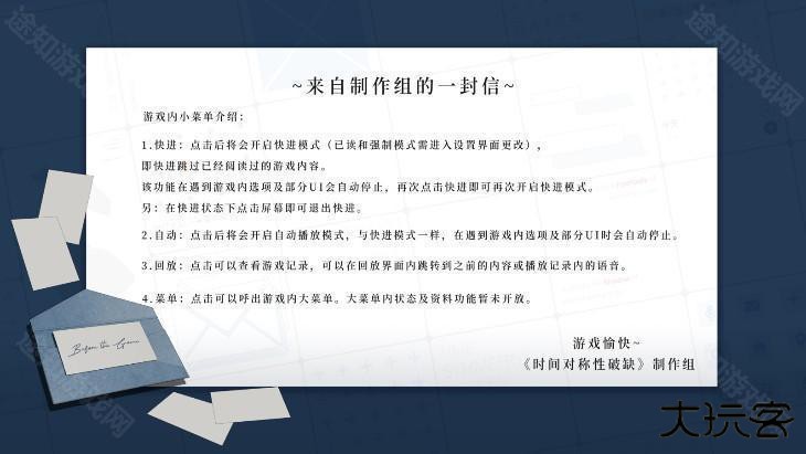 2、然后可以看一下来自制作组的一封信;上面有写本次剧情开放的部分、游戏内部分已开放的功能介绍以及游戏内小菜单的介绍;