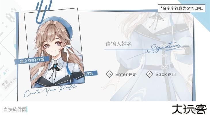 4、然后建立你的档案,先输入角色姓名,点击【Enter开始】;