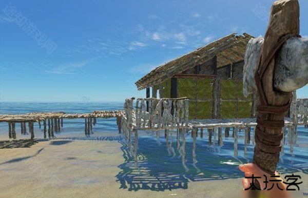 这是游戏里默认的半墙,不管什么材料 都默认带有柱子(就是触角),怎么去掉它呢,比如我想在这个墙角造围栏,先造旁边的绿色半墙,后造白色,然后在砍掉绿色,柱子会就都消失了。