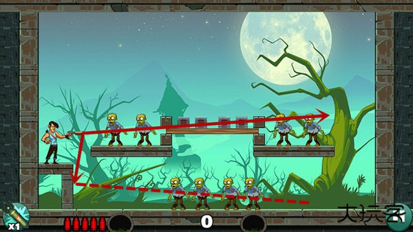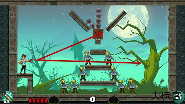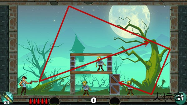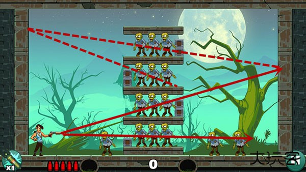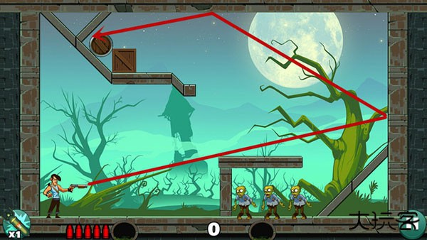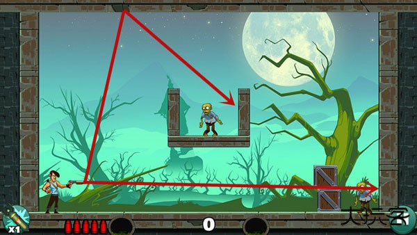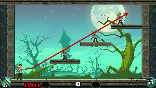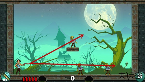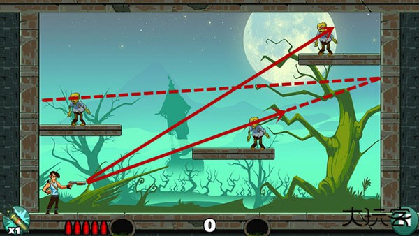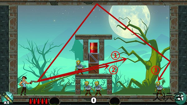 基本没啥技术含量,直接瞄准僵尸开枪就行。如果想耍帅只用一发子弹就过关?嘿,多试几个角度总能蒙对的