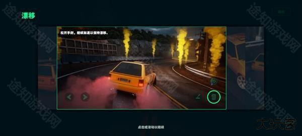 1、以一定的速度接近转弯处,转弯并点击手刹按钮开始漂移