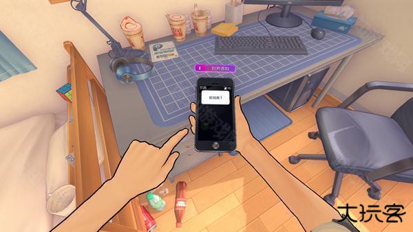 3、游戏采用3D第一人称,玩家扮演的主角从床上醒来,首先拿起桌子上的手机;