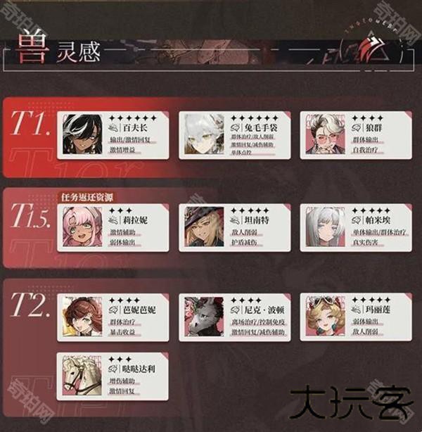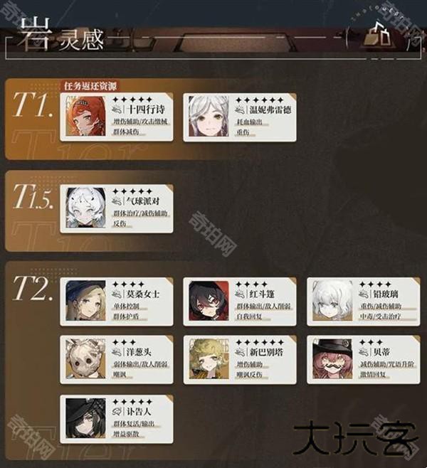 T1:星锑(暴击收益/伤害规避)、夏利(单体输出/反制驱散/群体增益)