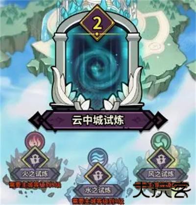 8、云中城试炼小技巧:后期元素试炼(主城9级解锁)打不过的时候,可以把主力阵容的宠物和神器暂时借给各元素英雄用来打试炼,这个能帮我们多闯很多关。