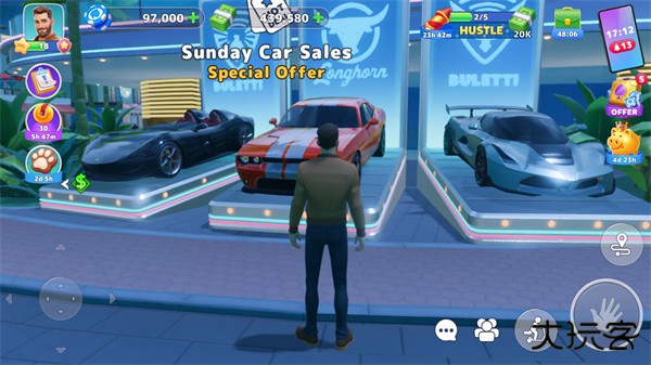 4、点击右上角的手机,然后点击汽车标志可以进入车库,你可以购买属于自己的车辆。
