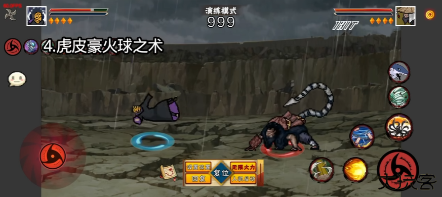 3、正式进入对战之后,你可以查看自己的技能和一些其他的信息,并且要注意中间的时间,时间到了没有死亡的话,就会根据剩余血量来判断胜负。