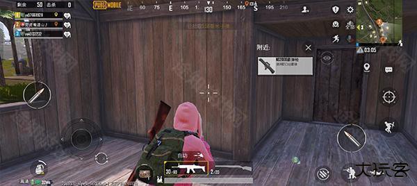 4、当我们安全落地的时候,就要快速进入房子中收集物质,里面有械、防弹衣、背包、子弹、手雷,药品等等,尽量收集更多的物质;