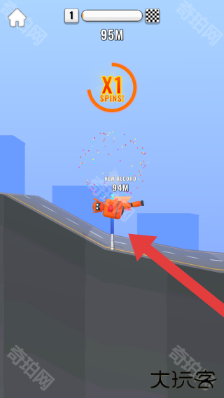 3、从画面元素(如橙色卡通角色、“X1SPINS!”“95M”等显示)看,属于《RollingSky》风格的跑酷或滚动闯关,是角色在道路上滚动挑战、突破地形障碍的玩法。