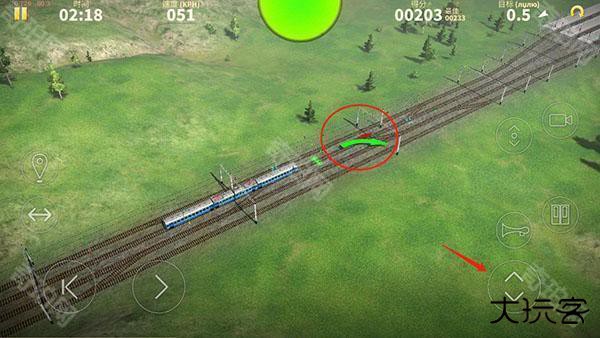6、根据指示可以提前预知前方道路信息,点击如图按钮可以切换火车的行驶方向,保证一路绿灯畅通;