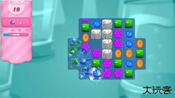 3、以L形的方式消除五颗相同的糖果可以获得包装糖。