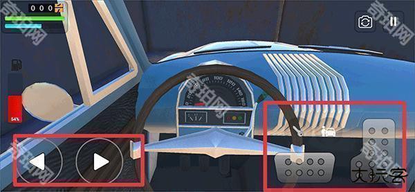 5、上车后就可以驾驶车辆行驶在道路上啦,左边按键控制方向,右边分别为倒车和前进,