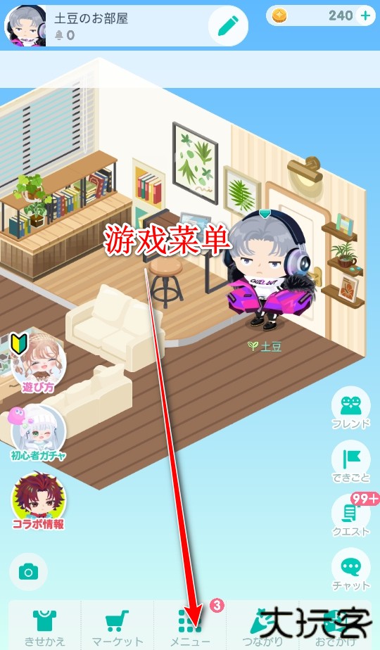 3.第三个九宫格为游戏的菜单,在这里你可以找到一些游戏的基础功能。