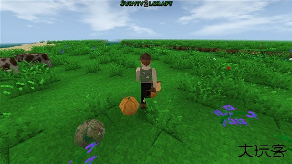 4、采集完足够的木头和树叶后,我们得去找些吃的,南瓜和鸟蛋是我们第一天主要的食物来源。