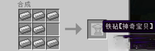 5、然后如图配方用铁制作精灵专用铁砧(非普通铁砧),以及一把锤子(可以是木头、石头、铁、金、钻石、铝),将铁砧放在地上后,手持球盖或者球座右键铁砧可以将其放在铁砧上(如图),然后手持锤子一直左键铁砧(锤子的材质越好所需时间越短),你会听到三次“叮”的声音,然后就会获得球盖或者球座。