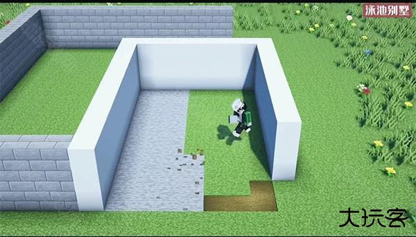 5、在使用蓝色玻璃做一面墙,围墙下面在垫一层输液装饰,让结构更加美观。