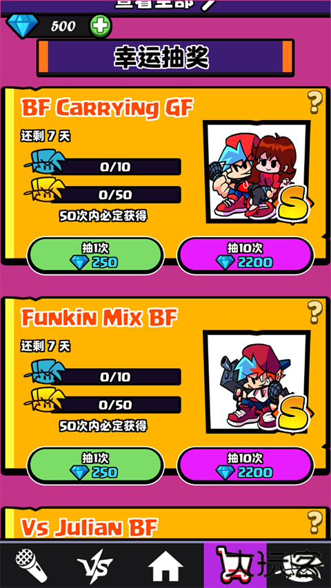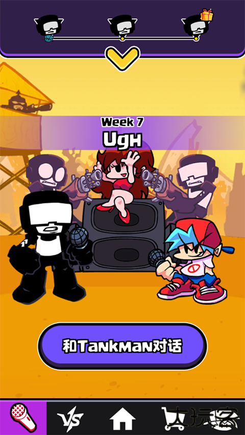 黑色星期五之夜节奏对战游戏中玩家可以寻找自己的节奏点,这里有大量的模组可以加入。海量的歌曲内容实时更新和加入,优质的音乐和铺面,独特的音效音质,让你沉沦在这个音乐的世界里面,你需要不断点击上下左右来完成节拍,尝试挑战更多的游戏分数。
