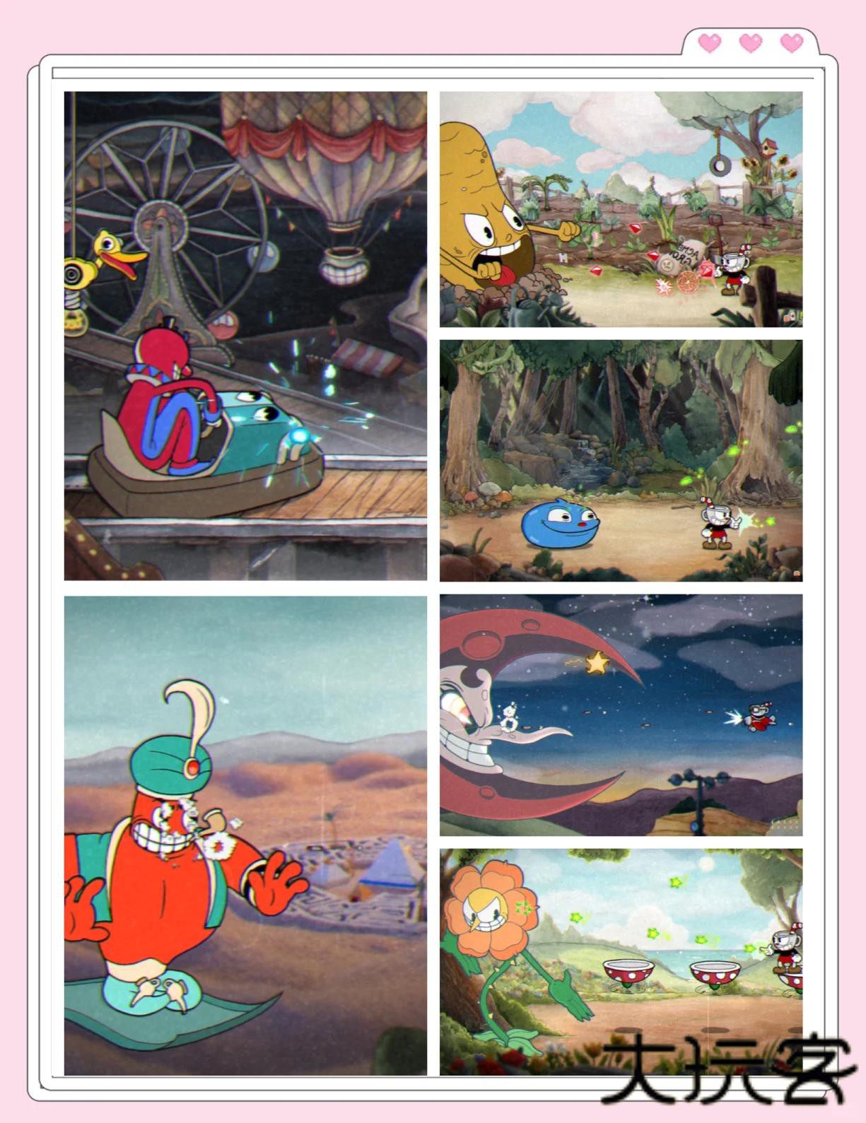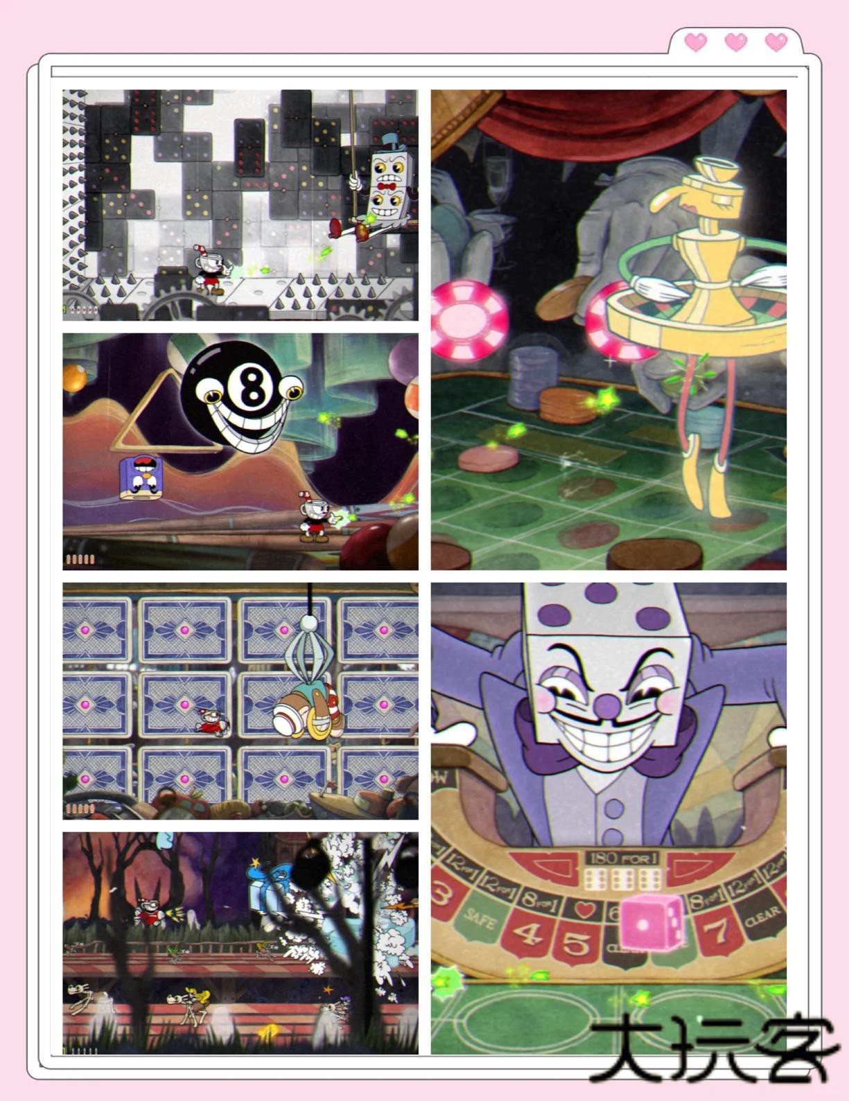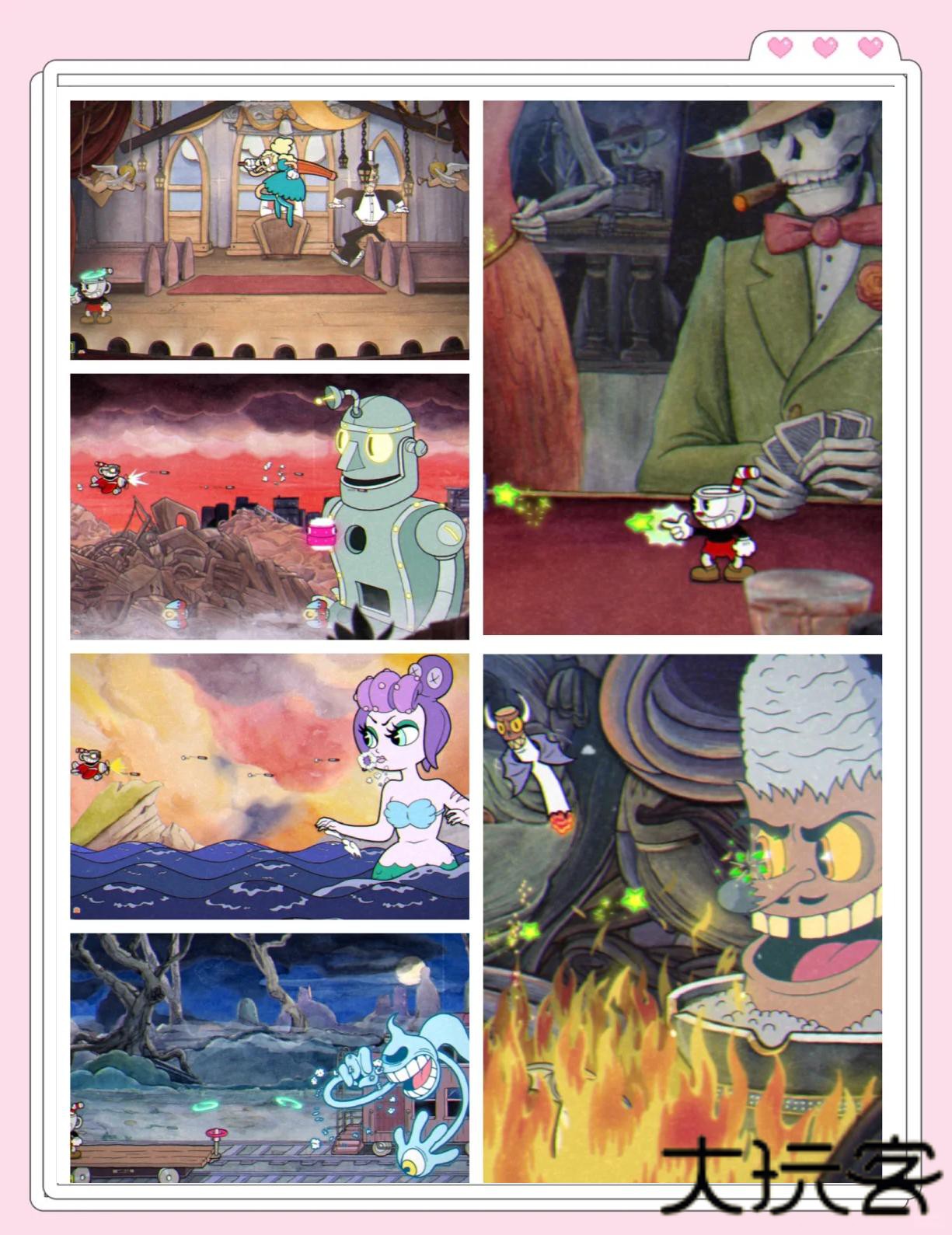 3.从身着波点睡衣的茶杯头兄弟,到长着扑克牌牙齿的赌场老板,每个角色都被赋予病态又可爱的橡胶人特质,堪称行走的畸形秀博物馆。