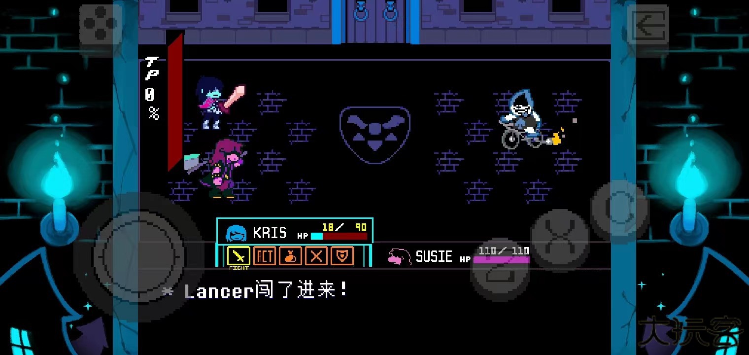 15、然后机会触发本作的第一场战斗。打倒兰瑟之后,刚刚被撞飞的公主会回来与他们会合。但是苏西在刚刚的战斗中得知,地下世界的出口在东边,所以离开了他们。