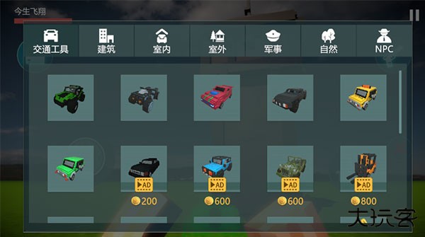6、背包里面塞满了 各种建筑模型、酷炫的汽车、还有人物模型。想开车?直接在汽车分类里 随便选一辆 你喜欢的就好