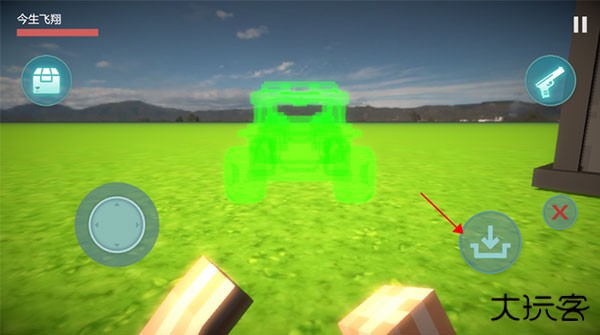 7、在游戏里 找个空地,对准地面按下 放下按钮,嗖的一下,你选的汽车就 创造出来 稳稳放在那了
