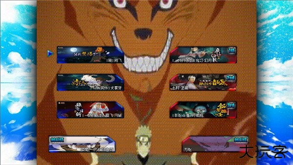 3.新剧情模式,我们可以看到自己使用的角色专属cg动画,火影村到忍者考试场等等场景可以选择。