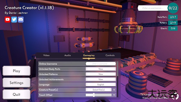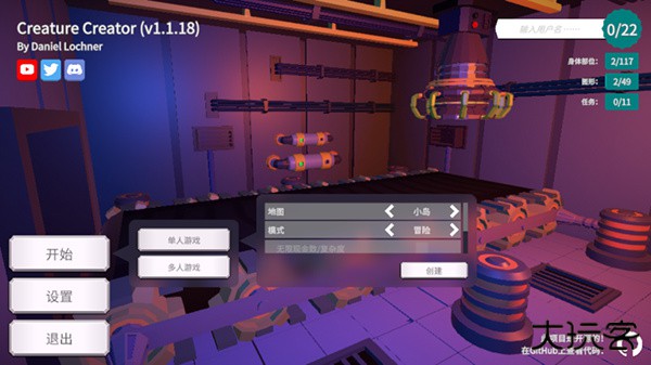 1、启动生物创造器 App,在主菜单上就能找到并点击 “settings”(设置)选项