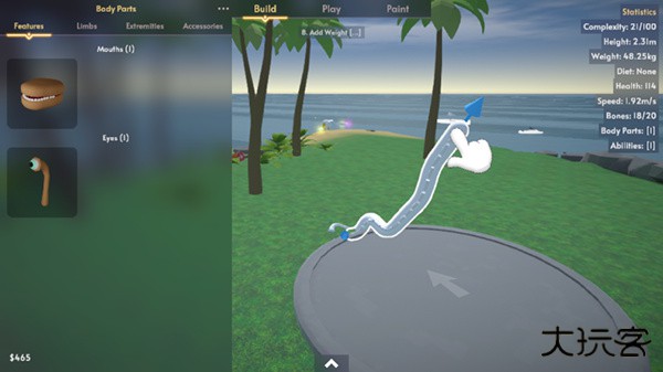 3、攒够素材找到 [构建] 按钮点开!各种头、身、腿、爪等零件摆眼前,按脑洞随心搭配,组合出独一无二的生物造型吧