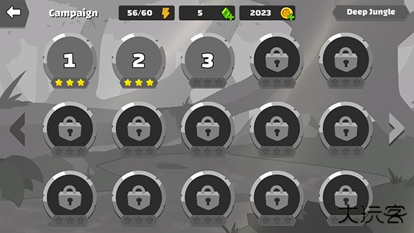 2、点击中间的闯关模式后,根据自己的进度选择关卡开始冒险。