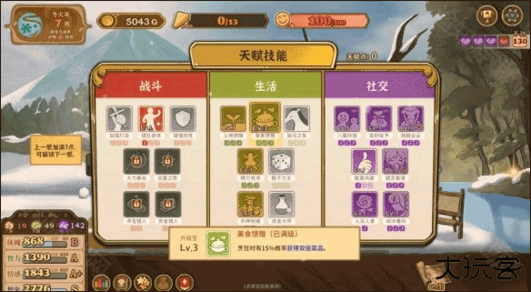核心天赋技能:土地馈赠、美食馈赠、兢兢业业、甜言蜜语。