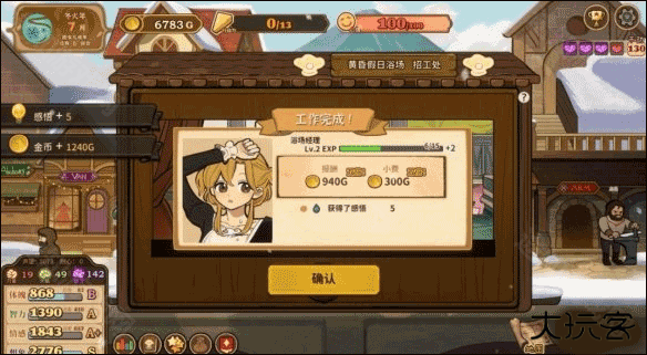 但这个并不完善,因为我们的一次打工才给800块,如果前面一直脸黑好几次就容易断掉循环,并且这样积累属性也慢,但只要我们打工次数到底15次,就会开启浴场经理由这个职位。