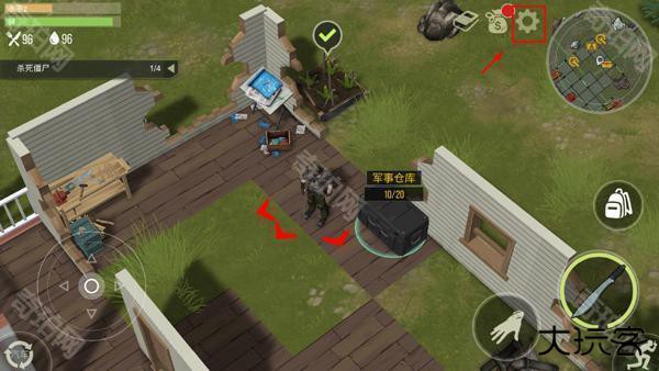 3、当遇到丧尸时我们可以使用右侧的攻击按钮攻击他们