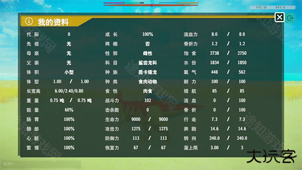 总结:埃雷拉龙在游戏中虽然比较弱势,但是体积小,不易被发现,拥有不俗的速度,可以跑赢大部分恐龙