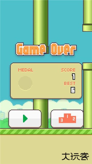 3、当小鸟安全穿过柱子而没有击中柱子时,得分为1分。当然,如果你击中它,你会直接死亡,只有一次生命。