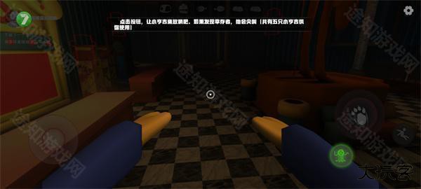 点击按钮,可以让小亨吉放哨,如果发现幸存者,它就会尖叫。(一共有5只)