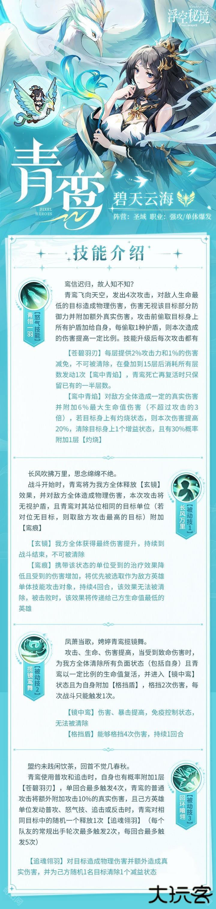 ●青鸾能够自动标记敌方同站位英雄,让队伍集中输出。受到致命伤害时还能复活,并进入镜中鸾状态。