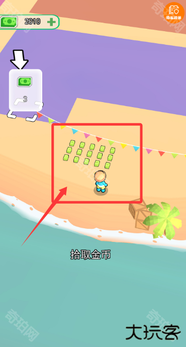1、进入游戏后,通过滑动屏幕移动角色,前往指定地点领取初始创业资金。